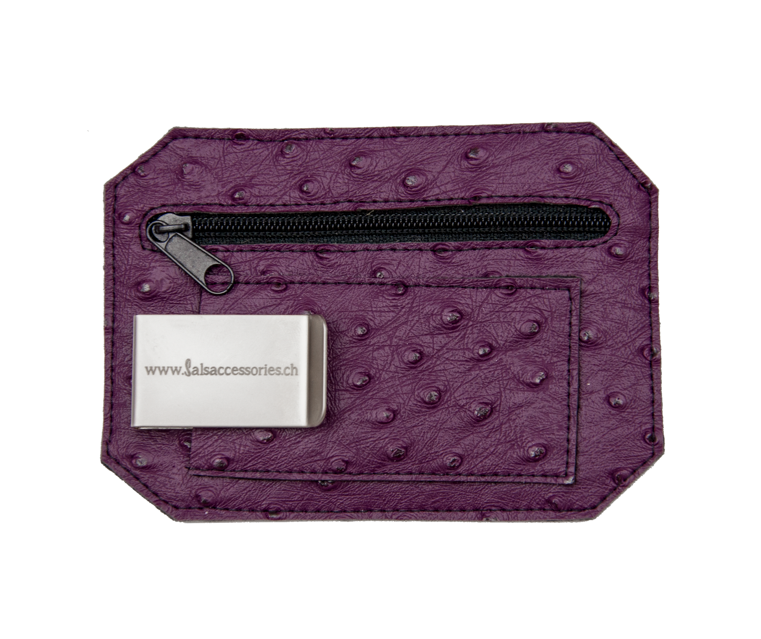 Deep purple ostrich. Die InvisiBags der Ostrich Edition von Salsaccessories sind in verschiedenen Farben erhältlich. Jeder InvisiBag fasst mühelos Kreditkarten, Identitätskarten, Geld und Hotel-Schlüsselkarten. Idealerweise werden nicht mehr als 3-4 Karten in den InvisiBag gepackt, um zu grossen Druck auf den Reissverschluss zu vermeiden.
