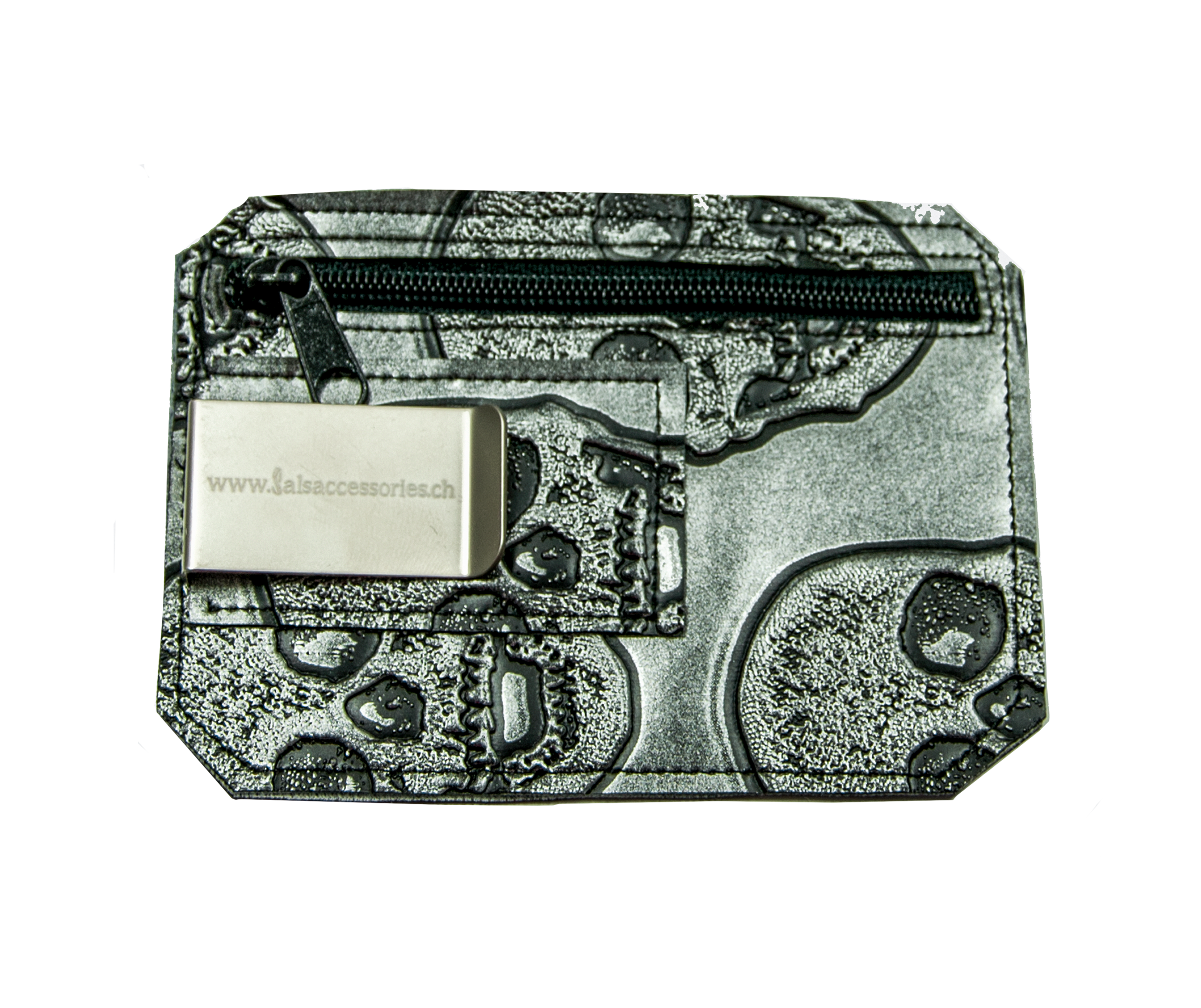 Silver skull. Die InvisiBags der Limited Edition von Salsaccessories sind in verschiedenen Farben erhältlich. Jeder InvisiBag fasst mühelos Kreditkarten, Identitätskarten, Geld und Hotel-Schlüsselkarten. Idealerweise werden nicht mehr als 3-4 Karten in den InvisiBag gepackt, um zu grossen Druck auf den Reissverschluss zu vermeiden.